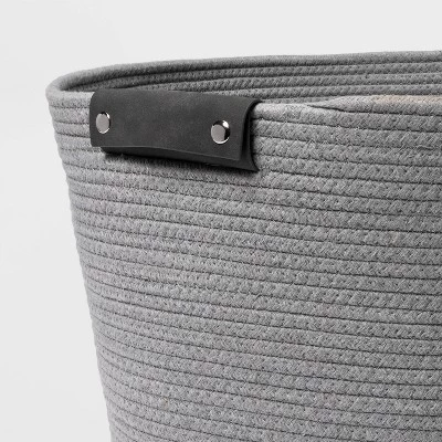 Storage can be stylish with the Coiled Rope Tapered Basket from Brightroom™. This decorative basket is made up of coils of gray rope accented with black leather handles for a simple yet chic look you’ll love to have on display. At 14 inches by 17 inches by 17 inches, the basket is a great size for stashing a throw blanket or two next to the sofa, holding stuffies in a playroom or keeping shoes off the floor in a closet. Wherever you choose to place it, you’ll appreciate how easily the neutral gray and black color combo coordinates with your current color palette.
