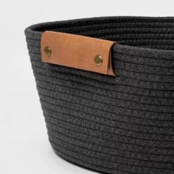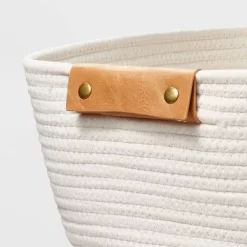 13″ Decorative Coiled Rope Square Base Tapered Basket Small White – Brightroom™